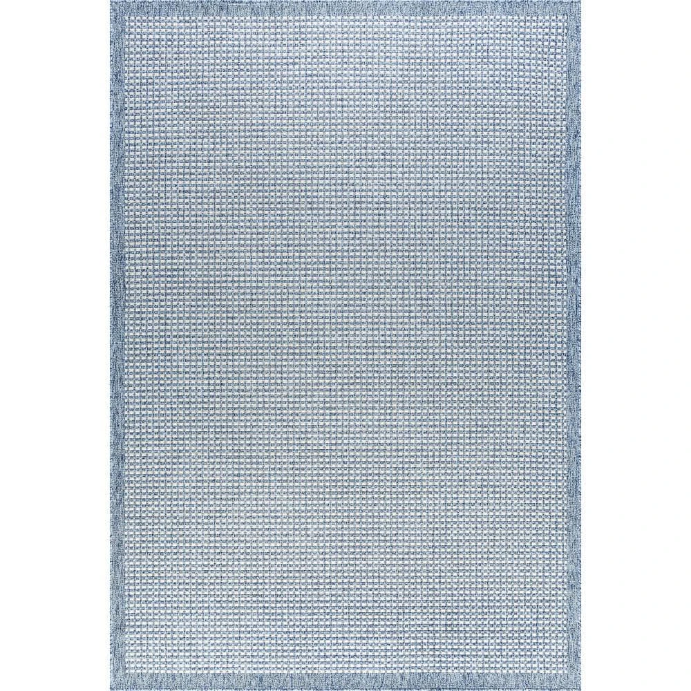 Textural waffle check windowpane basketweave of space dyed yarn creates an amazing indoor outdoor endurance area rug. Built to perform and treated with UV resistance to stay vibrant. Perfect for a family room, sunroom, porch, deck, den, living room, playroom, nursery.