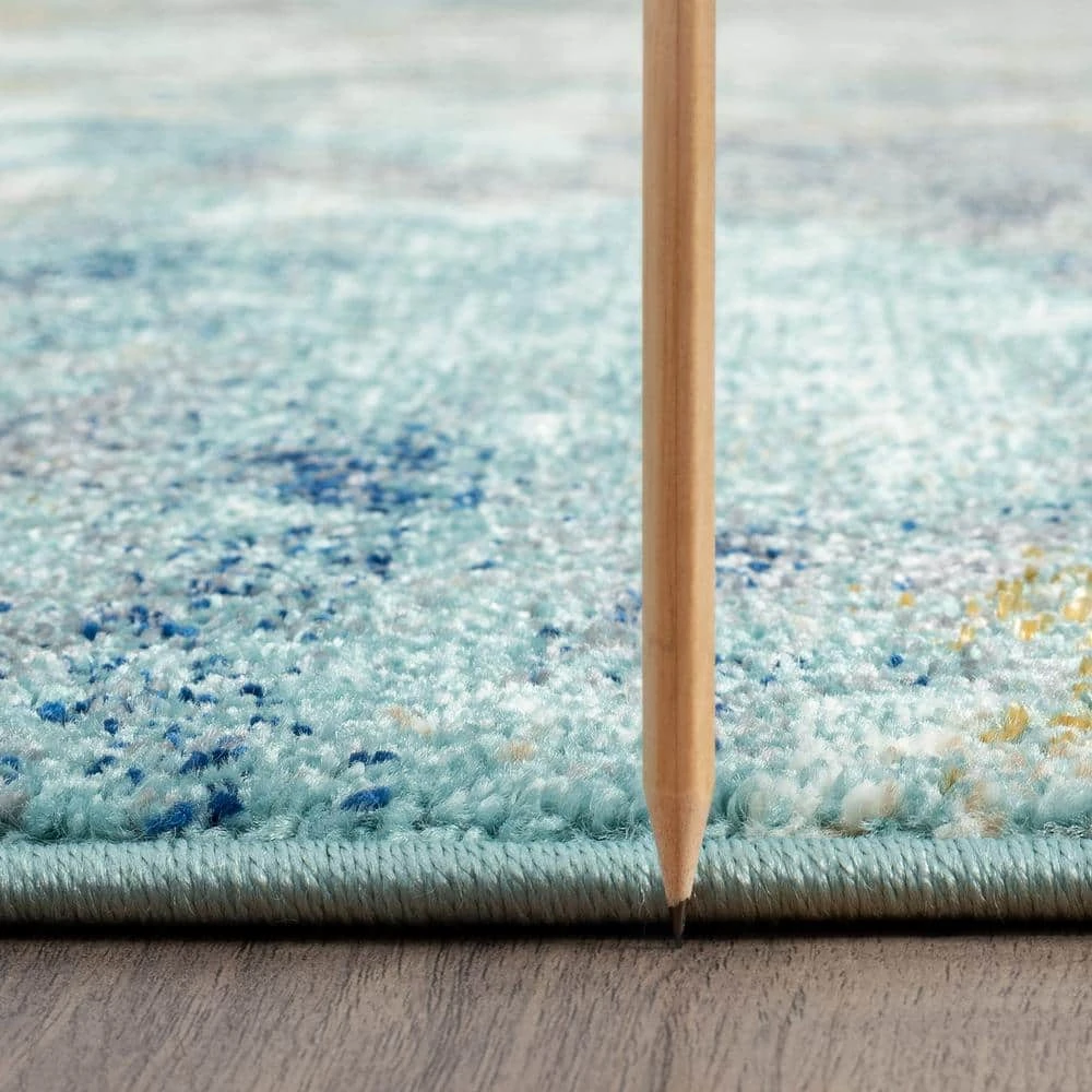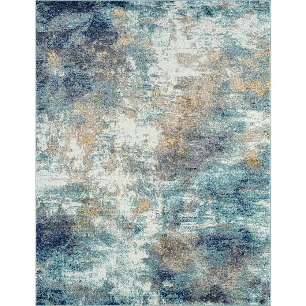 Abstract watercolor design resembles marble texture in this contemporary indoor area rug. Soft earth tone colors keep it grounded. Vacuum on high pile setting to remove debris taking care to avoid fraying the edges.