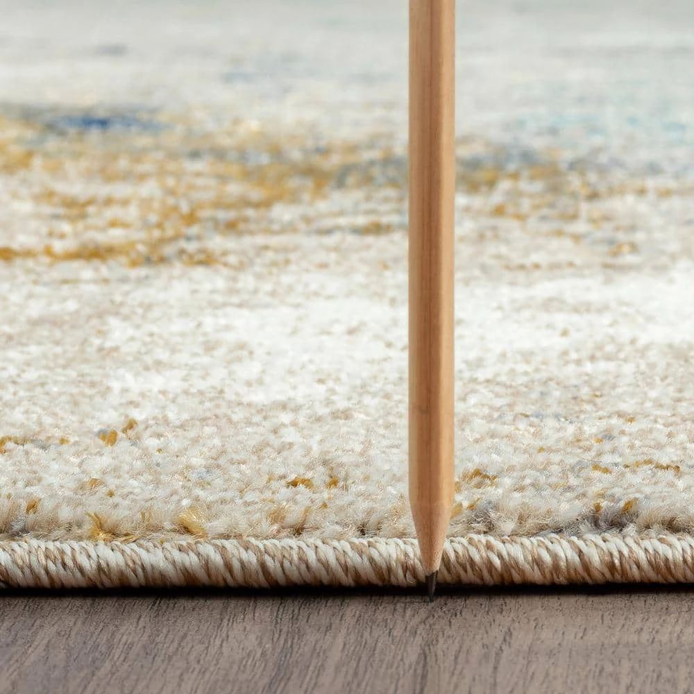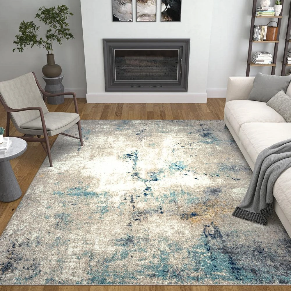 Artistic brushstrokes create a stunning contemporary indoor area rug. The trending color palette is an easy choice. Vacuum on high pile setting to remove debris taking care to avoid fraying the edges.