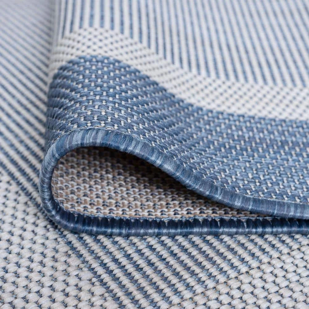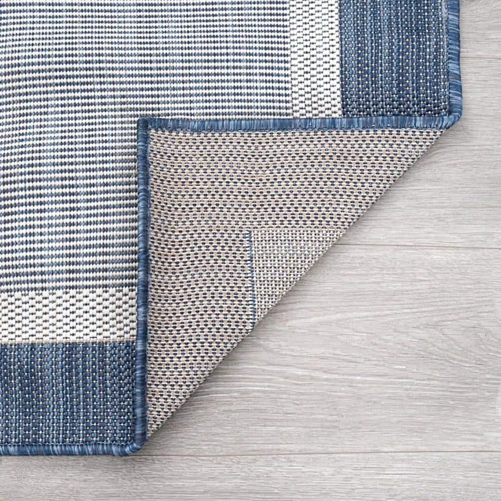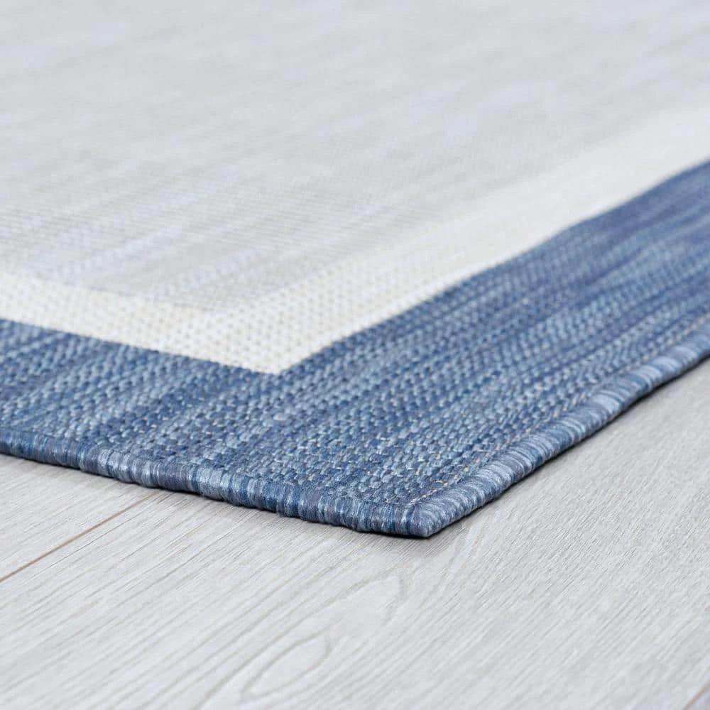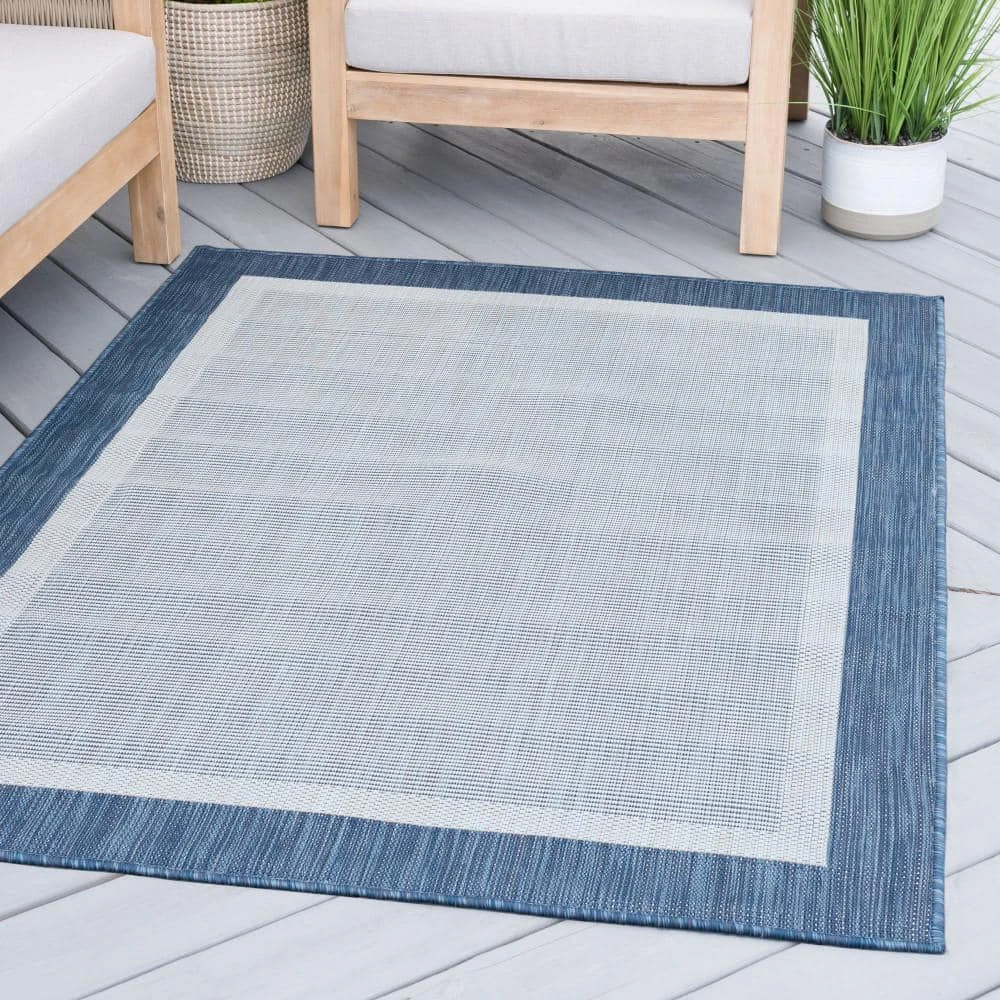 Simplify your life with this solid border indoor outdoor endurance area rug. No fuss styling is at home in any space. Treated fibers resist staining and fading, this rug is built to perform.