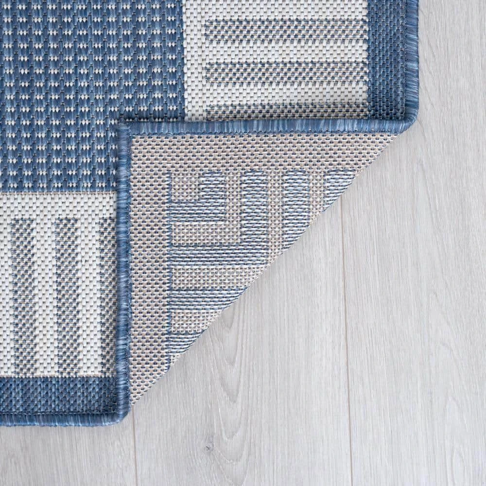 Simplify your life with this solid border indoor outdoor endurance area rug. No fuss styling is at home in any space. Treated fibers resist staining and fading, this rug is built to perform.
