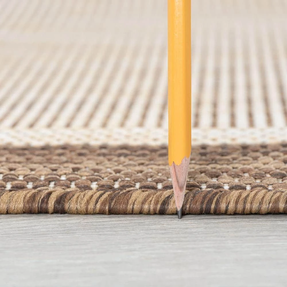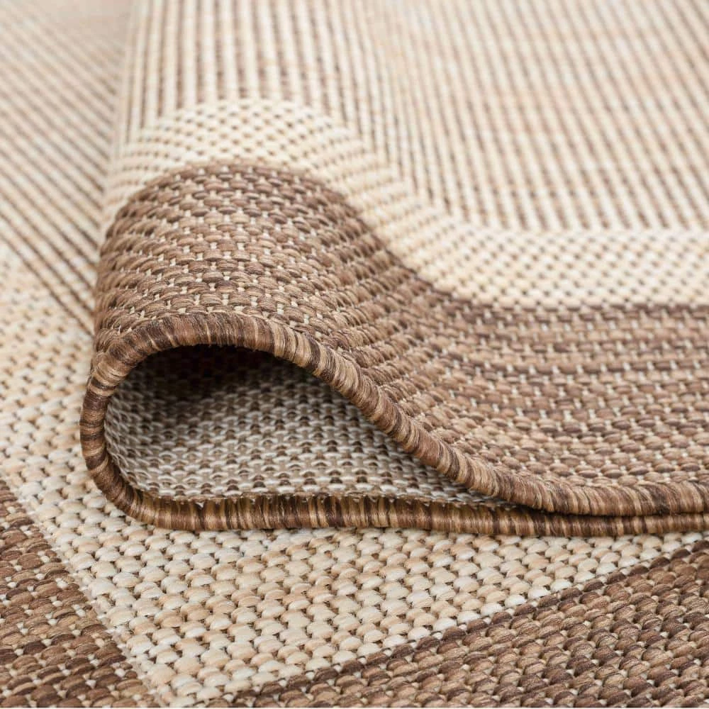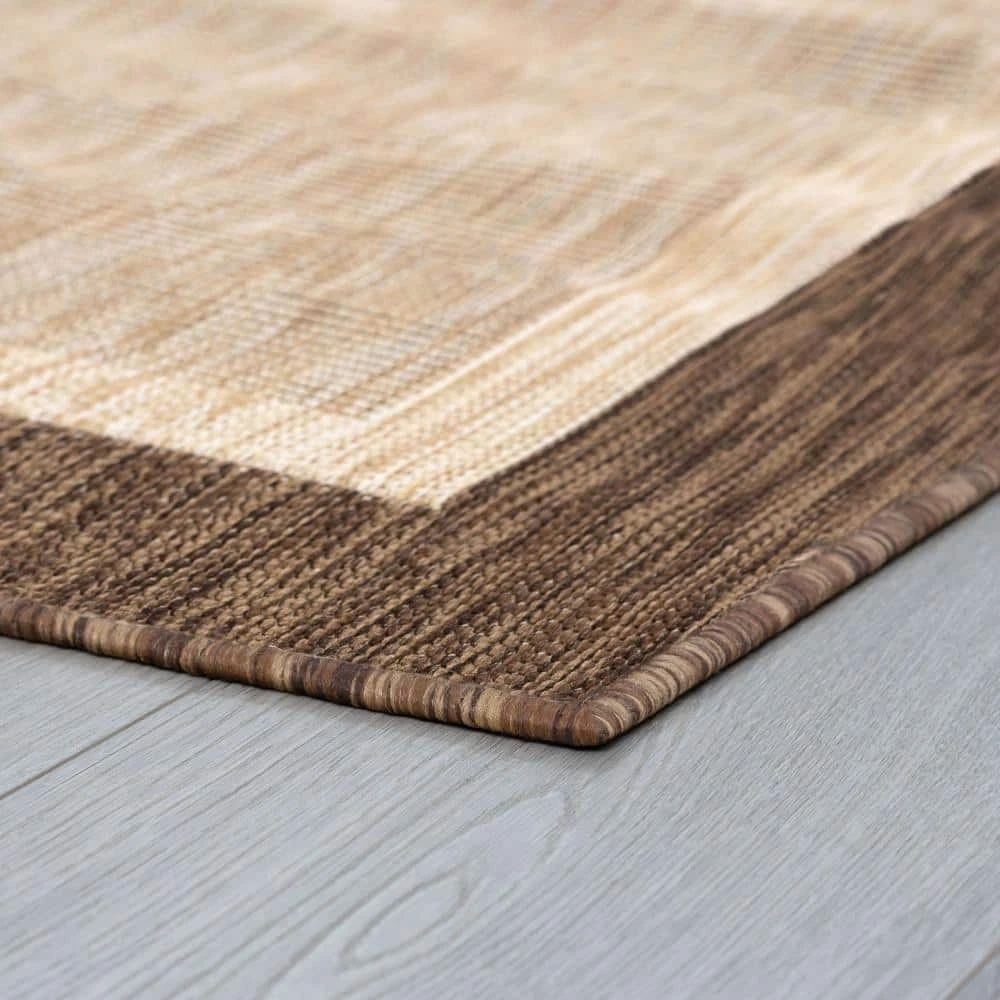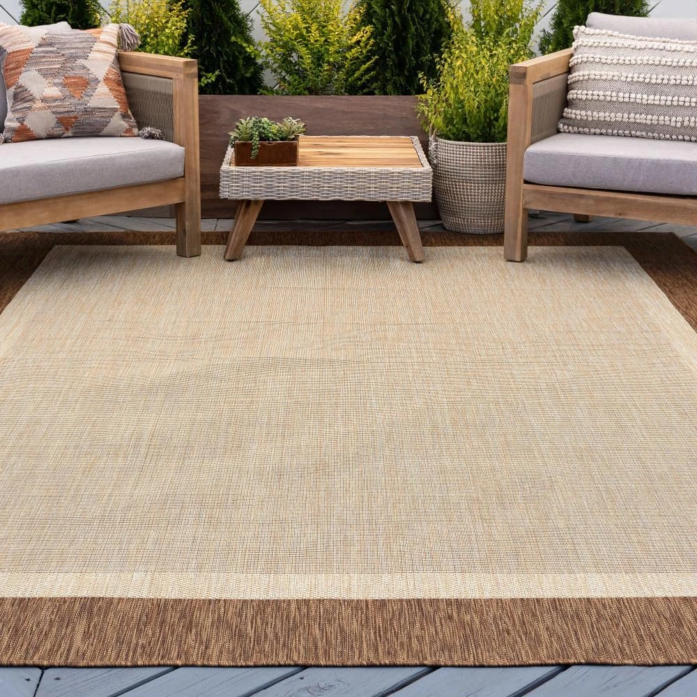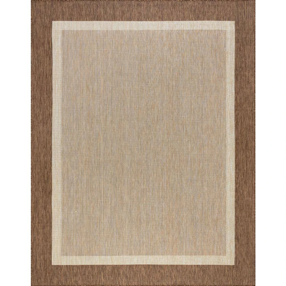 Simplify your life with this solid border indoor outdoor endurance area rug. No fuss styling is at home in any space. Treated fibers resist staining and fading, this rug is built to perform.