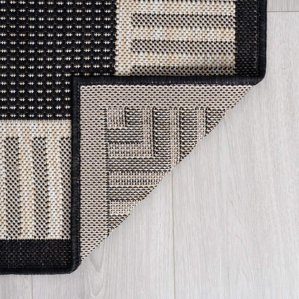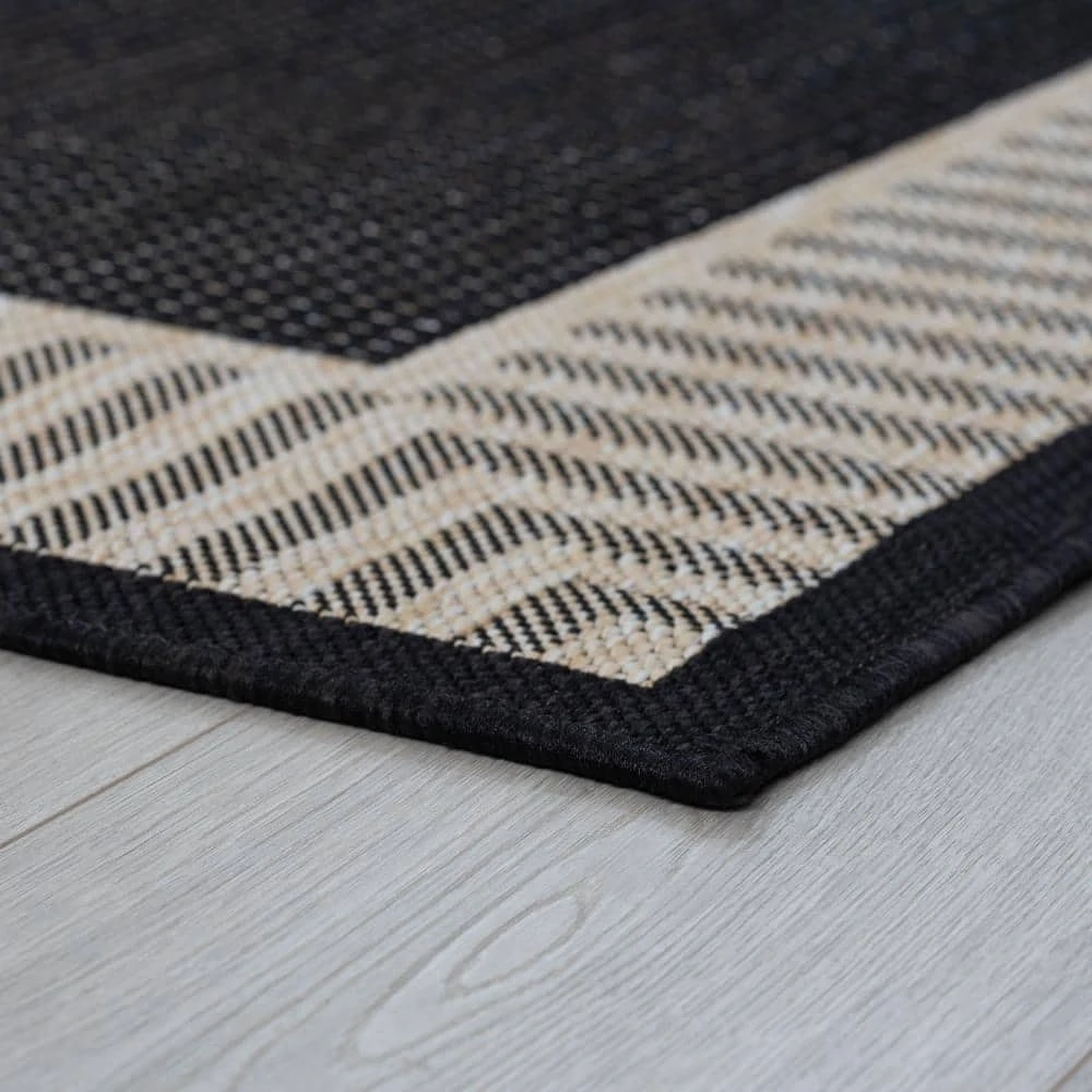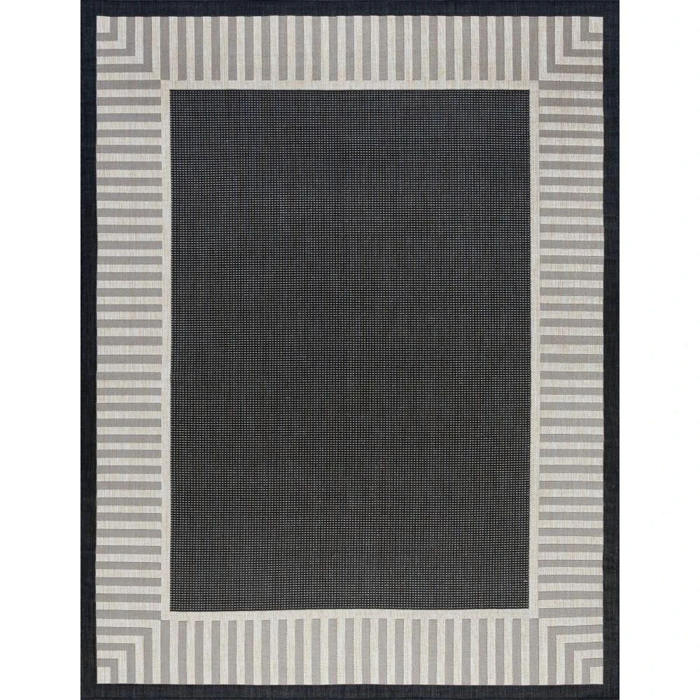 Create your private oasis with this solid indoor outdoor endurance area rug featuring a striped border. The simple styling is chic and elegant. Treated fibers resist staining and fading, this rug is built to perform.