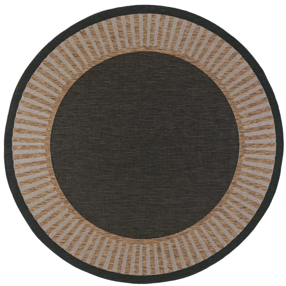 Create your private oasis with this solid indoor outdoor endurance area rug featuring a striped border. The simple styling is chic and elegant. Treated fibers resist staining and fading, this rug is built to perform.