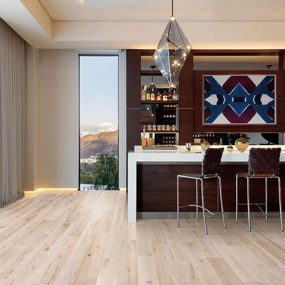It’s time to take hardwood quality and durability further. Malibu Wide Plank presents gorgeous French Oak in our new Nature Series Collection. This collection features a hand-stained sliced face French Oak veneer, which unlike rotary peeled veneer, our sliced face offers straight wood grains and gives you a premium solid hardwood visual. The elegant surface texture is wire brushed and each plank has hand rolled edges and ends which complete an unprecedented allure to define each plank. This tongue and groove collection is sealed with (7) layers of the latest super low gloss urethane finish with aluminum oxide, providing protection from everyday wear. A minimum of 75% of planks in each case will be full 47.64 in. lengths and can be installed on, above, or below grade. Backed by a lifetime residential warranty, Malibu Wide Plank is Lacey Act compliant, EPA and CARB 2 certified for your safety, it has also achieved the highly coveted Floor Score certification which is the most recognized indoor air quality (IAQ) certification standard for hard surface flooring materials. Malibu Wide Plank – here to expand design possibilities.