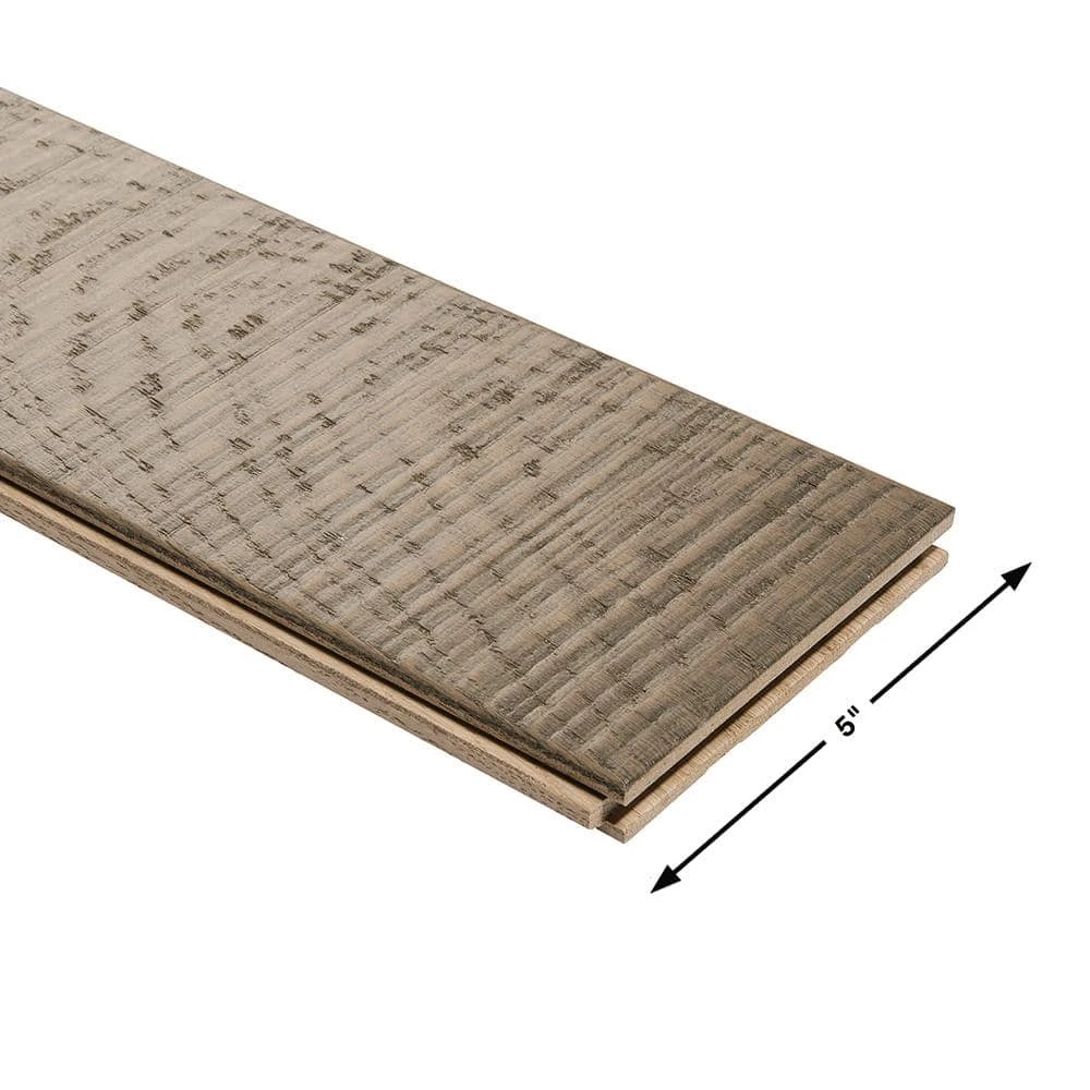 Improve your flooring with this French Oak Santa Cruz 3/4 in. Thick x 5 in. Wide x Varying Length Solid Hardwood Flooring (22.60 sq. ft./case). It features a distressed look that can complement a variety of design schemes. Add this to various rooms around your home to add an elegant touch.