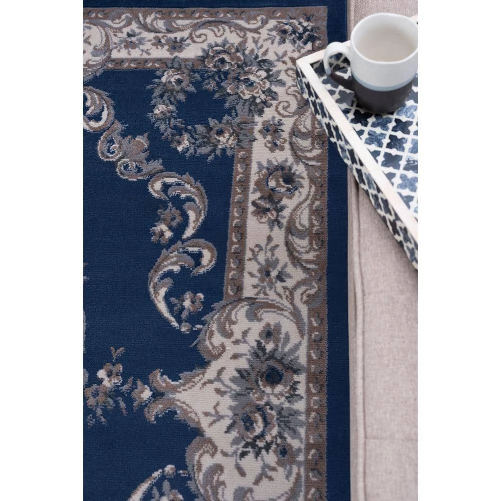 Botanical motifs intertwine to create this transitional brocade area rug design. A fitting complement to multiple decorating styles. In fashionable colors including gray, beige, cream and navy blue to freshen any space.