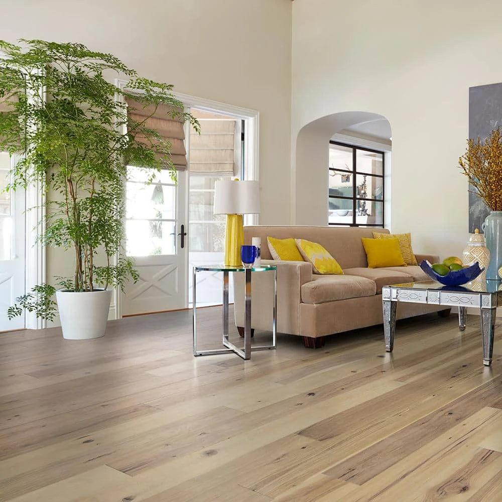 It’s time to take hardwood quality further! Malibu Wide Plank presents gorgeous Hickory in wider and longer planks, each hand-stained for a far more vivid color depth than machine-stained hardwood. Unlike rotary peeled veneer, sliced face offers straight wood grains and gives you a premium solid wood look. Hand rolled edges and ends complete an unprecedented allure. Choose from trend-setting shades from whitewash to earthy grays to browns – all sealed with 7 layers of the latest super low gloss urethane finish with aluminum oxide, providing protection from everyday wear. A minimum of 50% of planks in each case will be full 74.8 in. lengths. Surface texture features a beautiful elegant wire brushing. Backed by a lifetime residential warranty, Malibu Wide Plank is Lacey Act compliant, EPA and CARB 2 certified for your safety, it has also achieved the highly coveted Floor Score certification which is the most recognized indoor air quality (IAQ) certification standard for hard surface flooring materials. Malibu Wide Plank – here to expand design possibilities.
