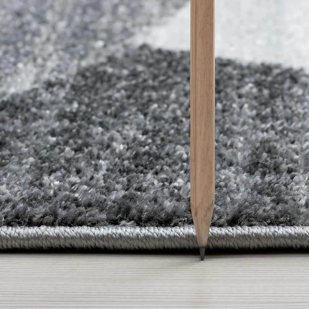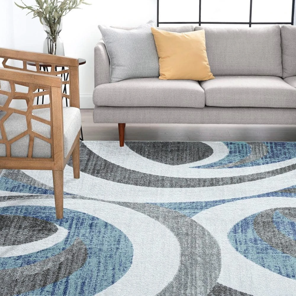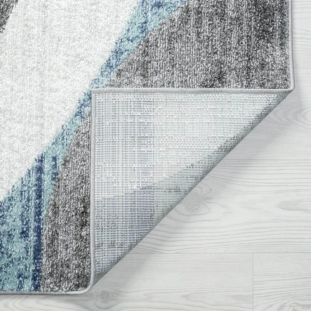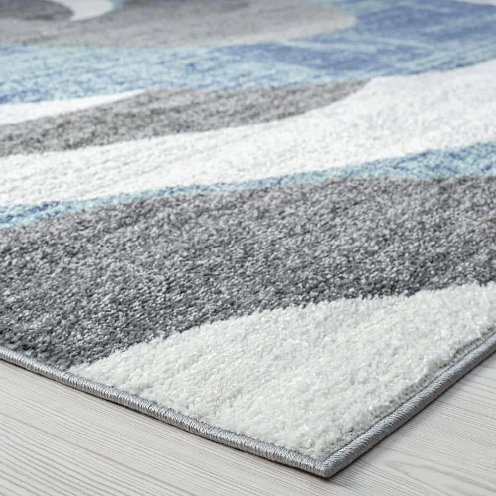 Distressed contemporary abstract pattern offers a modern take on a solid indoor area rug. Fresh colors make it a winning choice for updating a living room, dining room or bedroom. Vacuum on high pile setting to remove debris taking care to avoid fraying the edges.