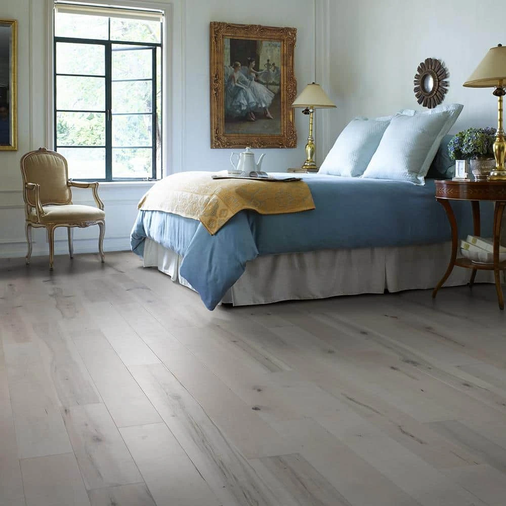 Enhance your home interior with this Malibu Wide Plank engineered hardwood flooring. Maple construction with a wire-brushed surface produces a rustic look. For lasting use, it offers seven-ply cross grain hardwood and a super-matte low gloss urethane finish.