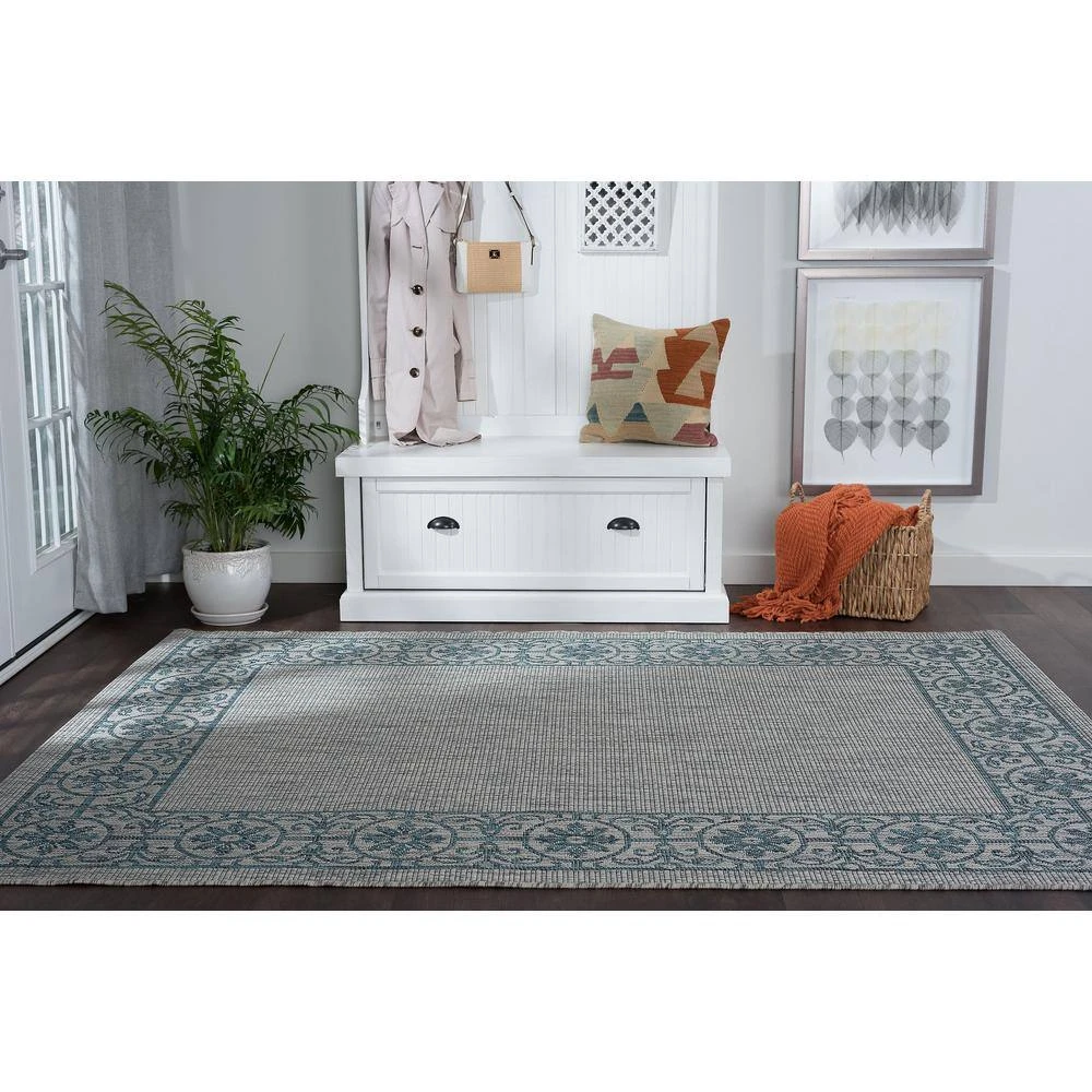 Update to a fresh new look with this indoor or outdoor filigree area rug. The marquise shaped medallions add the perfect touch to transitional, traditional and contemporary decor. Perfect for an indoor mudroom, entryway, hallway, family room, kids room, basement or anywhere you are looking for a durable and appealing solution.